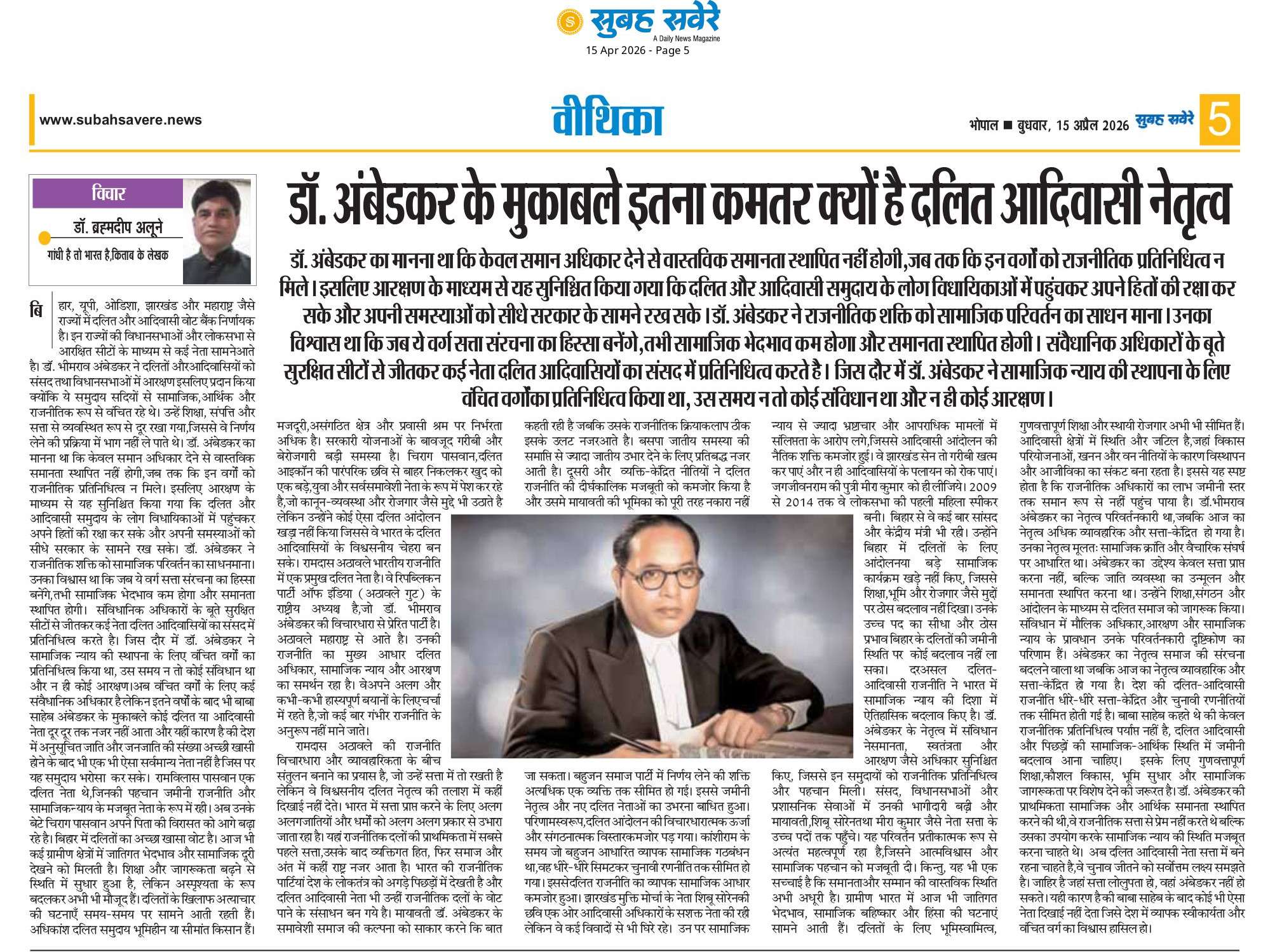 बाबा साहेब कहते थे की केवल राजनीतिक प्रतिनिधित्व पर्याप्त नहीं है,दलित आदिवासी और पिछड़ों की सामाजिक-आर्थिक स्थिति में जमीनी बदलाव आना चाहिए।  इसके लिए गुणवत्तापूर्ण शिक्षा,कौशल विकास,भूमि सुधार और सामाजिक जागरूकता पर विशेष देने की जरूरत है। डॉ.आंबेडकर की प्राथमिकता सामाजिक और आर्थिक समानता स्थापित करने की थी,वे राजनीतिक सत्ता से प्रेम नहीं करते थे बल्कि उसका उपयोग करके सामाजिक न्याय की स्थिति मजबूत करना चाहते थे।  अब दलित आदिवासी नेता सत्ता में बने रहना चाहते है,वे चुनाव जीतने को सर्वोत्तम लक्ष्य समझते है। जाहिर है जहां सत्ता लोलुपता हो,वहां आंबेडकर नहीं हो सकते। यही कारण है की बाबा साहेब के बाद कोई भी ऐसा नेता दिखाई नहीं देता जिसे देश में व्यापक स्वीकार्यता और वंचित वर्ग का विश्वास हासिल हो।