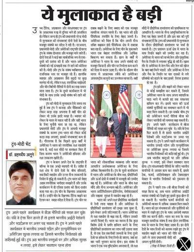 ट्रम्प की मोदी से मुलाकात ऐसे समय  तय हुई है जब ट्रम्प ने कनाडा और मैक्सिकों को लेकर कड़ा रुख अपनाया है वहीं चीन को लेकर भी उनके इरादें सख्त है। व्यापार को लेकर वे भारत से सहज नहीं है और यहीं भारत के लिए चुनौती माना जा रहा था। लेकिन प्रधानमंत्री मोदी और ट्रम्प में आपसी मजबूत संबंधों के कारण ट्रम्प भारत को लेकर कोई कड़ा रुख अपनाएं,इसकी संभावनाएं कम ही है।गौरतलब है की पिछले कुछ वर्षों में अमेरिका ने भारत को रणनीतिक रक्षा सहयोगी माना है,कई रक्षा सौदों पर हस्ताक्षर किए है जिस कारण भारत ने अमेरिकी हथियार और रक्षा उपकरण खरीदे है। ट्रम्प न केवल अपने देश के राष्ट्रपति है बल्कि वे एक अच्छे व्यापारी भी है। जाहिर है रक्षा क्षेत्र में दोनों देशों के बीच हथियारों,तकनीकी सहयोग और उन्नत सैन्य उपकरणों के निर्यात में वृद्धि हो सकती है। ट्रम्प भारत को बेहद अहम रणनीतिक भागीदार समझते है और उनके कार्यकाल में ही एशिया प्रशांत को हिन्द प्रशांत कहा गया था। ट्रंप चीन के खिलाफ आक्रामक रहे है।उन्होंने चीन के खिलाफ टैरिफ बढ़ाने का ऐलान कर  सख्त संदेश दे दिया है।ट्रंप चीन पर दबाव बढ़ाने के लिए क्वाड को एक मजबूत सामरिक संगठन मानते है।यह भारत की इंडो पैसिफिक रणनीति के लिए बेहद जरूरी है। अमेरिका को चिंता है कि चीन अपनी सैन्य शक्ति बढ़ाकर इंडो पैसिफिक क्षेत्र में दबदबा बना रहा है। अमेरिका के लिए चीन के मुकाबले भारत एक बेहतर रणनीतिक और आर्थिक विकल्प बन सकता है। हाल के वर्षों में अमेरिका ने भारत के साथ अपने संबंधों को मजबूत किया है और चीन पर निर्भरता कम करने की दिशा में कदम उठाए हैं। चीन के दक्षिण चीन सागर में आक्रामक रवैये को अमेरिका अंतरराष्ट्रीय कानूनों का उल्लंघन मानता है। वहीं भारत की लोकतांत्रिक व्यवस्था और बाजार आधारित अर्थव्यवस्था अमेरिका के लिए अधिक विश्वसनीय है।