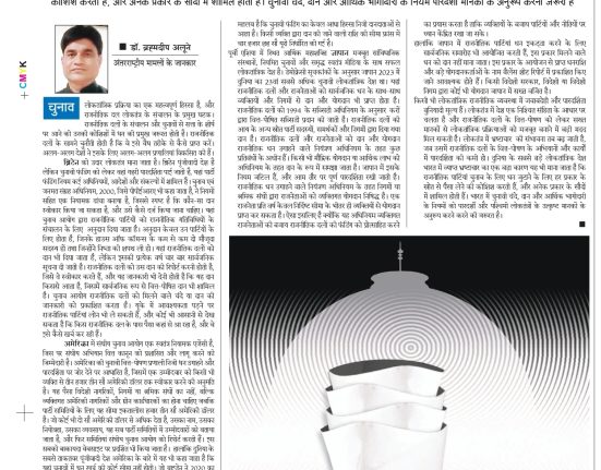 राष्ट्रीय सहारा,हस्तक्षेप चुनाव लोकतांत्रिक प्रक्रिया का एक महत्वपूर्ण हिस्सा है और राजनीतिक दल लोकतंत्र के संचालन के प्रमुख घटक है।