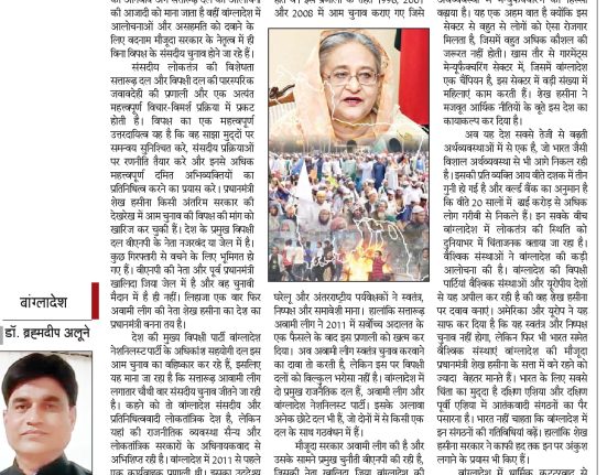 राष्ट्रीय सहारा बांग्लादेश की वैश्विक साख एक आर्थिक टोकरी के तौर पर तो पुख्ता है लेकिन लोकतांत्रिक प्रतिबद्धताओं को लेकर